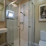 מקלחת, וילונות אמבטיה ומגבות מסופקים.